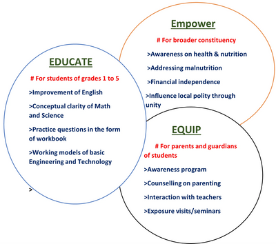 We believe in empowering the children and their communities, so that they become independent and become contributing citizens. We have devised a program called ‘Educational Quality Improvement Program [EDUQIP]’ with aim to educate the children, equip the parents and empower the communities that the children live in. Our experience of working with communities in various parts of India, taught that for children to succeed in education, parents support is of paramount importance. In underprivileged communities, most of the fathers are alcoholics and they live in one or two room chawls. Children do not get conducive environment at home for studies. Parents are to be made aware and counseled about their children education.
